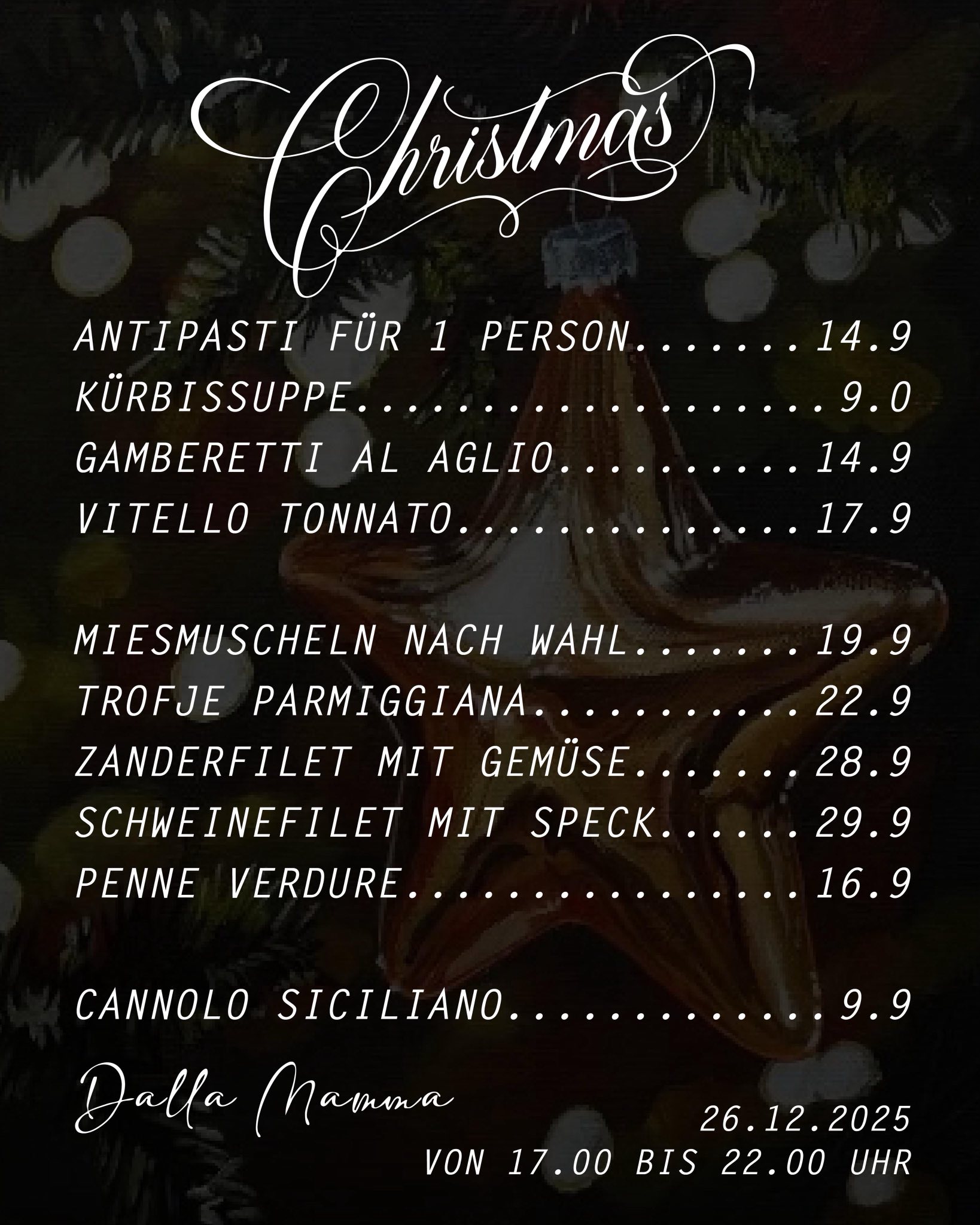 Im Restaurant Dalla Mamma erzählt jedes Gericht eine Geschichte. Mit Leidenschaft für authentische Küche und einer besonderen Liebe zum Detail bringen wir die echten Aromen unserer Tradition auf den Tisch. Unsere Mission ist es, Ihnen ein kulinarisches Erlebnis zu bieten, bei dem Sie sich wie zu Hause fühlen, während wir Sie auf eine gastronomische Reise mitnehmen, die die Wurzeln respektiert und die Frische der Zutaten wertschätzt.